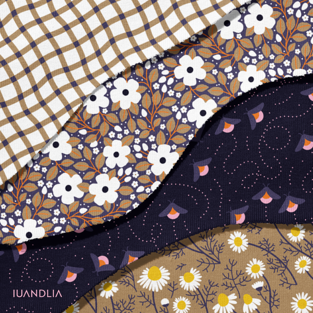 Evening Chamomile + Delicate Blush + Whimsical weave + Poppy Meadow + Dusk Grid + Morning chamomile